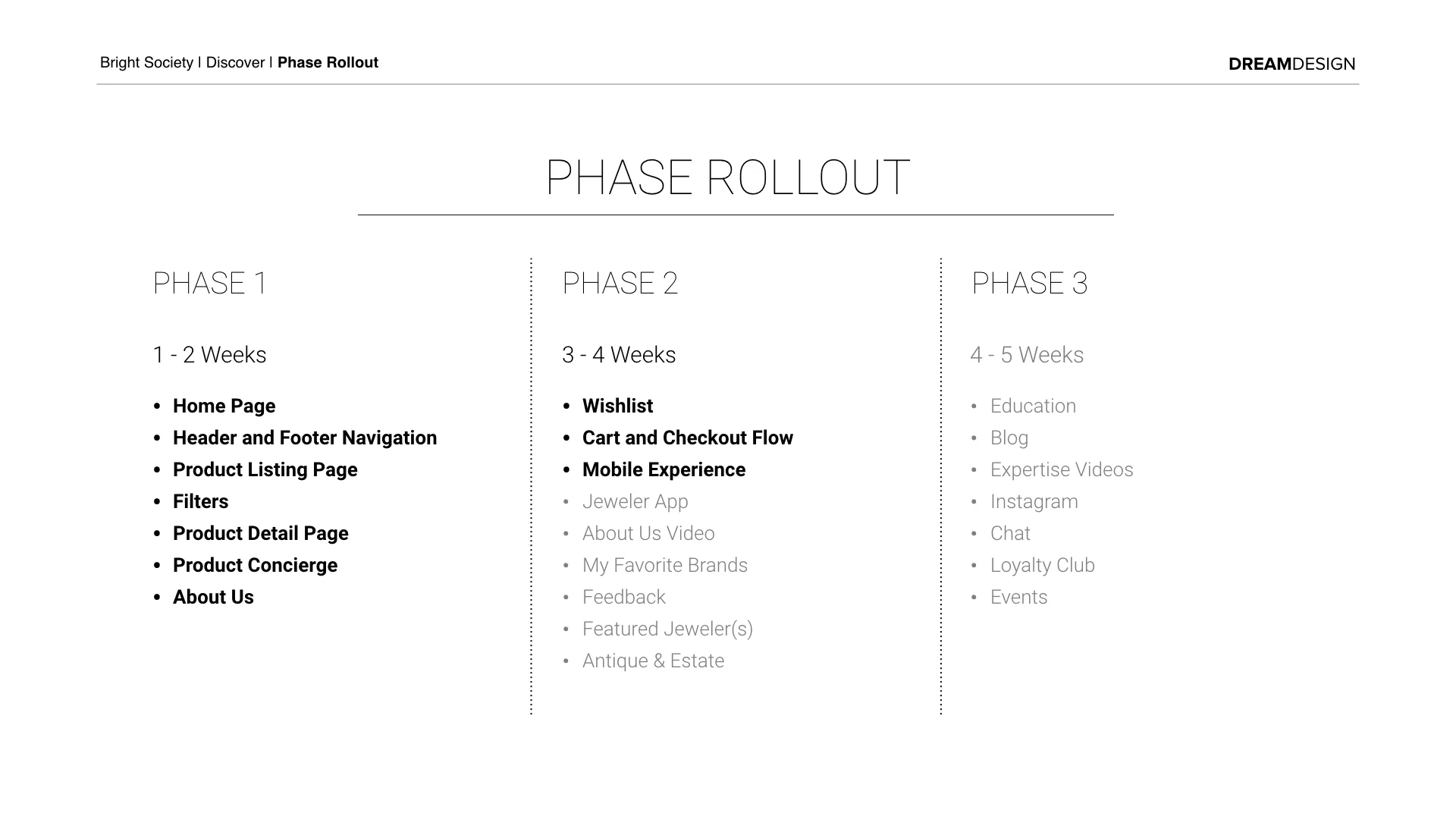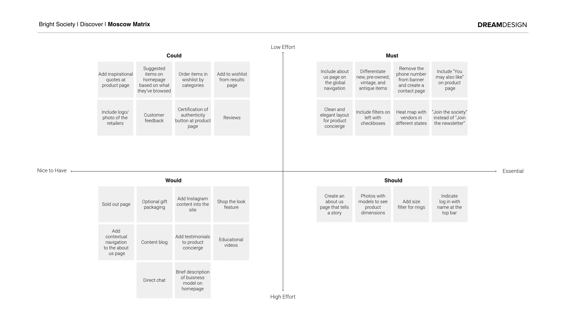 Having defined our personas, we then discussed which features would be most important to Barbara, Amanda and Michael. Using the MoSCoW method, we prioritized all features and then planned a Phase Rollout for a MVP within the time period we had left. Our goal was to finish designing all Phase 1 features. In the end, we were able to design all seven features in Phase 1 as well three of nine features in Phase 2.